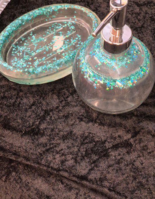 Handmade Epoxy Resin Soap Dispenser & Tray Set