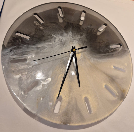 Handmade Resin Wall Clock – Elegant Black, White, and Gold Design