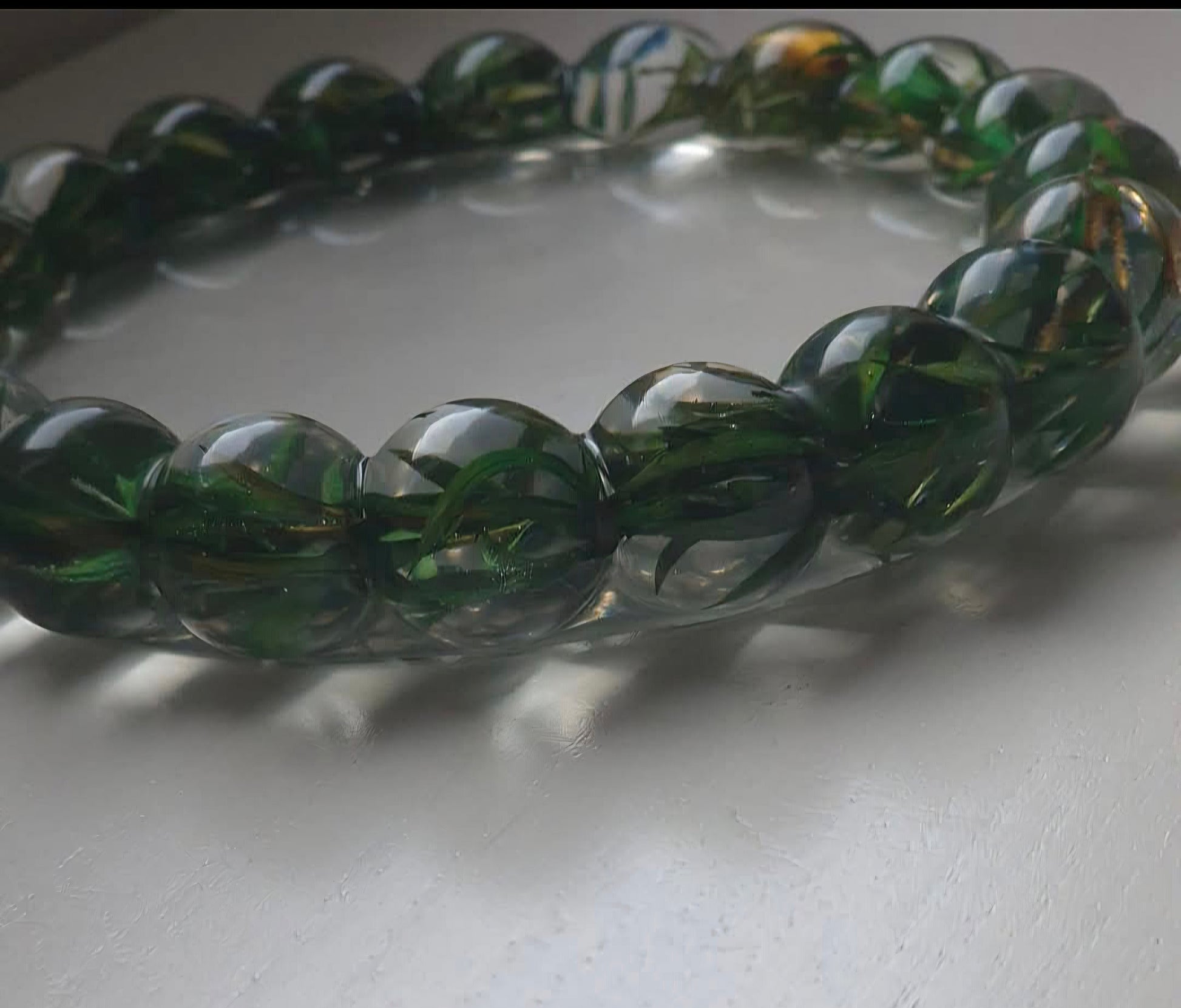 Nature-Inspired Elegance: This stunning handmade coaster captures the beauty of nature with delicate greenery preserved in crystal-clear epoxy. The deep green tones and organic details create a serene, calming effect, making it a perfect addition to any space.